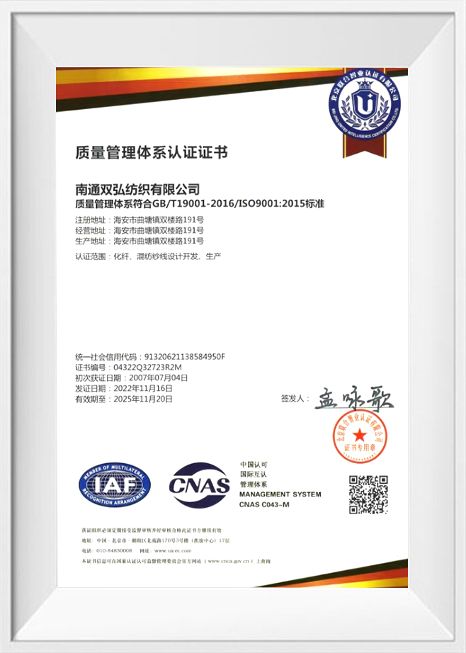Het bedrijf is het Innovation Center for New Fiber Spinning in the National Textile Industry, met het Jiangsu New Fiber Spinning Engineering Technology Research Center, het Jiangsu Enterprise Technology Center en het Double Great Research Institute. Het bedrijf heeft meer dan 50 nieuwe producten ontwikkeld op provinciaal niveau of hoger. Het heeft meer dan 40 nationale uitvinding patentenmodeloctrooien en heeft de Gold Award gewonnen voor octrooien in de Chinese textielindustrie. Het bedrijf heeft 4 nationale fakkelprojecten en 5 -sterrenbrand uitgevoerd en heeft 3 nationale normen, 11 industrienormen, 4 groepsnormen en 3 douaneverwerkende handel enkele consumptienormen geformuleerd. Het bedrijf bracht onder andere de kwaliteit, milieu, gezondheid en veiligheid van het werk, de meting, energie, intellectueel eigendom, integratie van informatisatie en industrialisatie, IATF16949 en GRS 、 OCS -certificeringen. The company has won numerous honors, including the National Advanced Grassroots Party Organization, the Chinese Famous Trademark, the National High-tech Enterprise, the National Green Factory, the National Textile Industry "Specialized, Refined, Unique, and New" Enterprise, the National Textile Industry Quality Award, Good Supplier in the Chinese Knitting Industry, the Influential Brand in the Chinese Cotton Textile Industry, the Outstanding Contribution Enterprise in Technological Progress in Chinese Cotton Textile Industry, the Annual Partner of the Chinese Fiber Trend, de National Textile Industry Product Development Contribution Award, de National Green Design Demonstration Enterprise The National Contract Keeping and Credit Enterprise, The National Model Labour Relations Harmonious Enterprise, The Jiangsu Quality Brand, het Jiangsu Industrial Design Center, de Jiang Civilized Unit en de Mayor's Quality Award of Nantong.