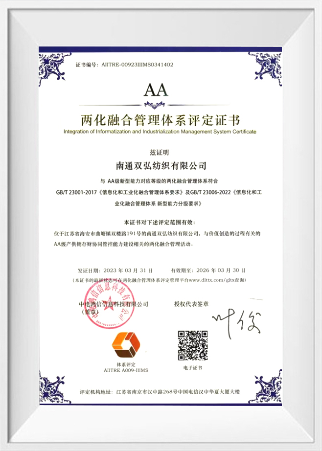 Het bedrijf handhaaft de missie van "elk garen is een zonnestraal", zet de visie op "Life in the Warp and Weft, Double Great Textile duurt voor altijd", houdt zich aan de kernwaarden van "innovatie, kwaliteit, integriteit, harmonie" en bevordert de geest van "oprechtheid en vakmanschap". Het bedrijf gaat gestaag vooruit op het pad van hoogwaardige ontwikkeling.