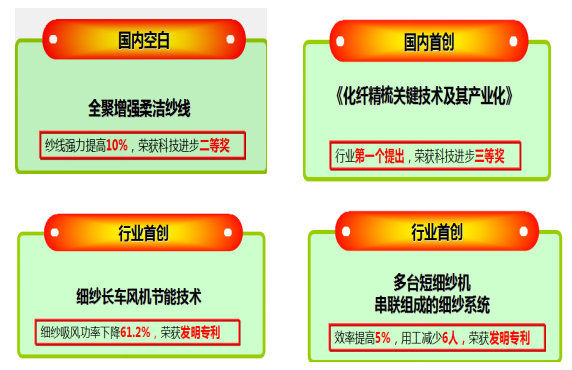 Met het innovatieve concept van "One Stap Stoage van anderen", werd het technische onderzoeksmodel van "One Main, Two Links en Full-Staff Innovation" samengevat en verfijnd. Hij was voorzitter van de oprichting van het National Textile Industry New Fiber Spinning Innovation Center, het National Yarn Testing Center, het National Breation Yarn R&D en Production Base, het Provincial Enterprise Technology Center, het Provincial New Fiber Spinning Engineering Technology Research Center, het Provincial Enterprise Graduate Workstation en andere R & D- en Innovation -platforms. Creëer een provinciale digitale workshop voor "high-end ecologisch" gemengd garen met 20.000 spindels, de binnenlandse kleine batch green intelligente productielijn met multi-batch, ondernemen 2 National Spark-programma's, 3 nationale Torch-programma's en 4 Jiangsu provinciale belangrijke technologie-innovatieprogramma's. 8 prestaties wonnen de Jiangsu Textile Technology Innovation Award en won 17 nationale geautoriseerde uitvinding patenten en 10 utiliteitsmodeloctrooien. De kerntechnologie van het bedrijf is altijd voorop geweest in de industrie en veel innovatieve projecten hebben de binnenlandse industrie gewonnen.