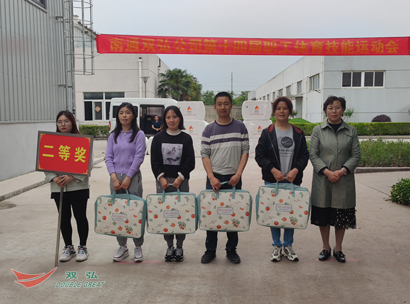 Om het spirituele en culturele leven van werknemers te verrijken, de geest van hard werken, vooruitgang, gezondheid en harmonie te bevorderen, de cohesie en centripetale kracht van de meerderheid van de werknemers te verbeteren en de hoogwaardige ontwikkeling van de onderneming te bevorderen, Op 6 mei hield Nantong Double Great Textile Co., Ltd. de 14e Sports Skills -games voor werknemers. Zhang Guangyun, fulltime vice-voorzitter van de Qutang Town Federation of Trade Unions, en Yang Yang, voorzitter van Double Great Company, namen deel aan het evenement. Meer dan 160 front-line medewerkers van verschillende workshops van het bedrijf namen deel aan de wedstrijden in verschillende evenementen.