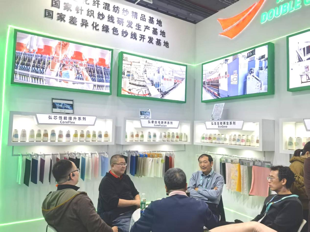 Nantong Double Great Textile Co., Ltd. bracht een aantal exposities op de tentoonstelling, waaronder gedifferentieerde cellulose-vezelreeks, BIO-gebaseerde serie, gerecyclede high-end polyester-serie, gedifferentieerde kern-gesponnen series, high-end natuurlijke lichte Hong-serie en nieuw ontwikkelde wol pure spinning gemengde blended series, bio-materialen (polylactinezuur-zure plein) en andere high-end series-series producten.