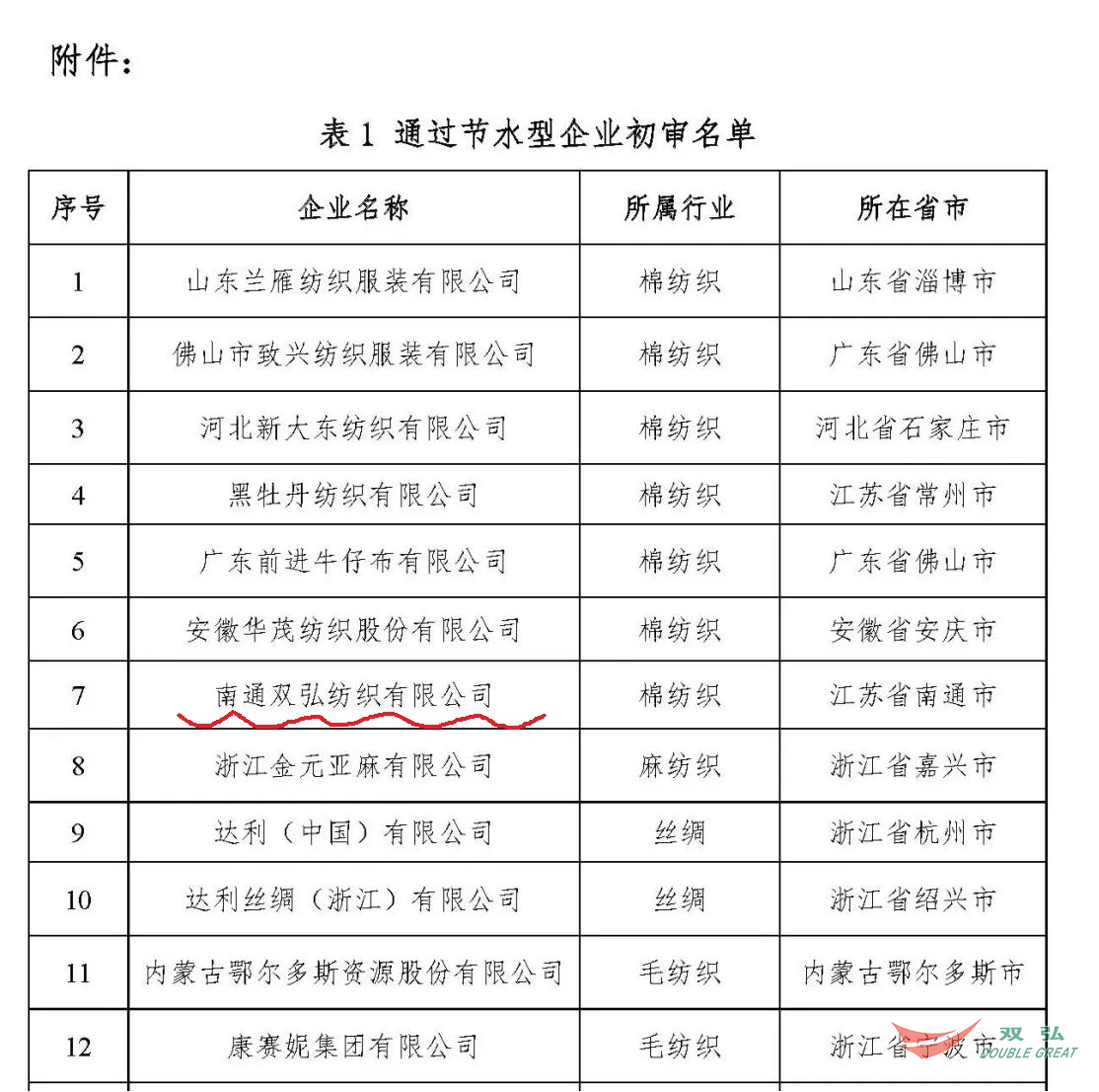 Op 25 juli kwam het nieuws van de officiële website van de China Textile Industry Federation dat Nantong Double Great Textile Co., Ltd. de waterbesparende onderneming 2022 kreeg in de textielindustrie. Het is de enige katoenen draaiende onderneming in Nantong om deze eer te ontvangen.