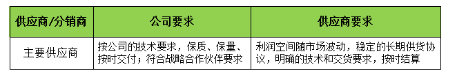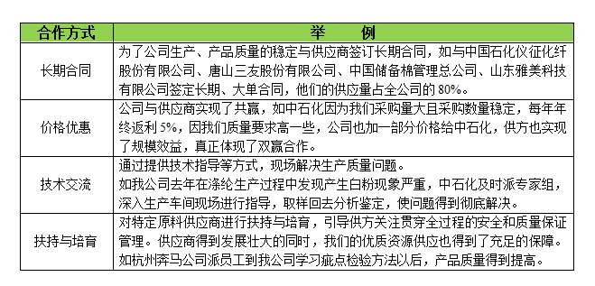 Het bedrijf besteedt speciale aandacht aan de relatie met leveranciers en heeft belangrijke leveranciers en partners geïdentificeerd. Om samenwerking op de lange termijn, wederzijdse verbetering en win-win-ontwikkeling tussen de twee partijen te bevorderen, voert het voornamelijk de volgende aspecten uit.